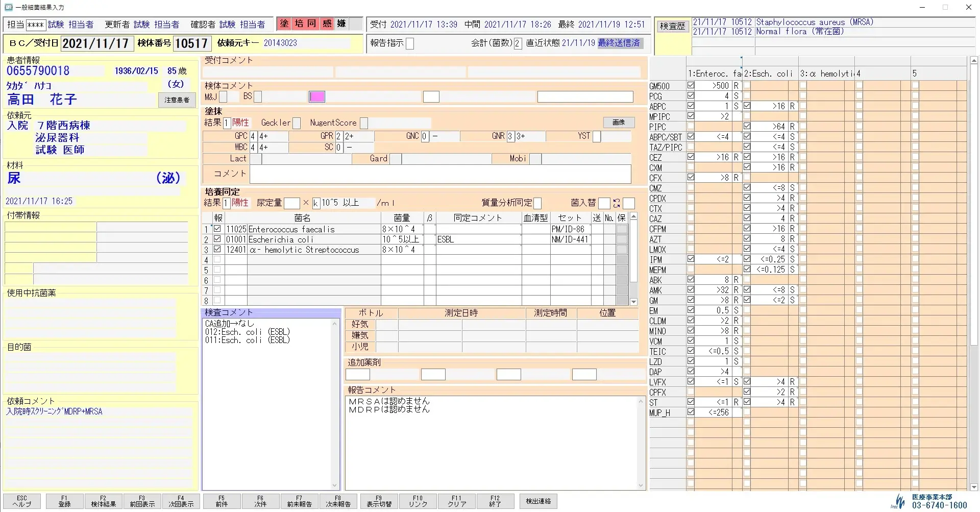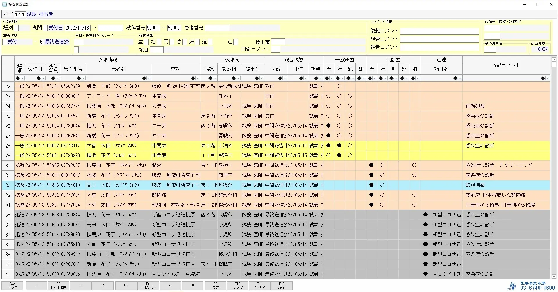 - 検出菌の表示により、見たい検査が分かりやすい。